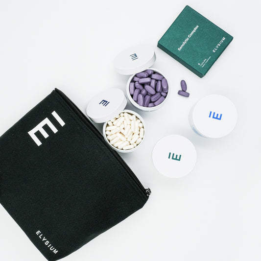 A limited-edition set featuring Elysium’s supplement collection. Treat yourself or a loved one to a one-month supply of each of our supplements, designed to target multiple aspects of aging.