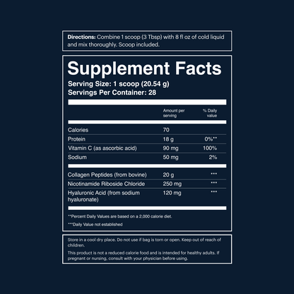 Youthful skin (plus, hair, nails, bones, and joints) requires collagen and NAD+. Unfortunately, both decline starting in our 20s. Cofactor by Elysium Health is an advanced 4-in-1 collagen system that combines: collagen peptides, nicotinamide riboside (NR), a precursor that’s clinically proven to boost NAD+, hyaluronic acid, and vitamin C.