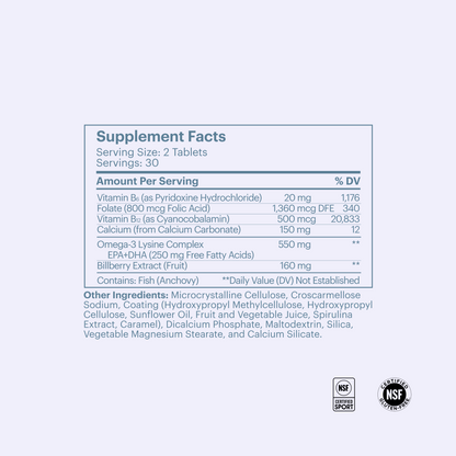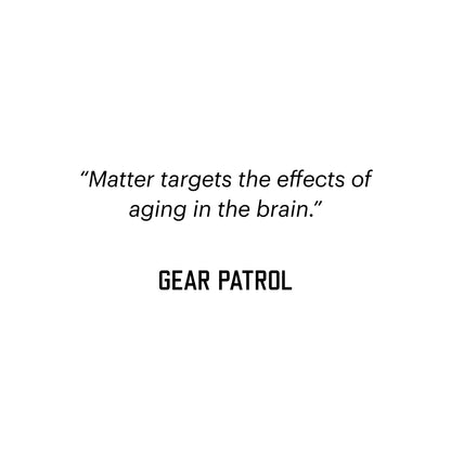 Matter is designed to support long-term brain health with a specific combination of B-vitamins (B6, folic acid and B12) that was shown in a clinical study to slow age-related brain atrophy associated with mild memory concerns, omega-3s, and a bilberry extract that is rich in plant-based antioxidants called anthocyanins. All of these ingredients have been shown, through a combination of epidemiological research and clinical trials, to support brain function.The B-vitamin complex plays an important role in maintaining normal metabolism of the amino acid homocysteine. High homocysteine levels are associated with advanced age and have been shown to correlate with the rate of brain atrophy in healthy adults. In the University of Oxford's VITACOG study, two-year supplementation with the B-vitamin complex was shown to effectively lower homocysteine levels and slow age-related brain atrophy in 168 older people with mild memory concerns. Other studies of shorter duration have indicated that the effect of B vitamin supplementation on homocysteine levels occurs in the order of a few months.